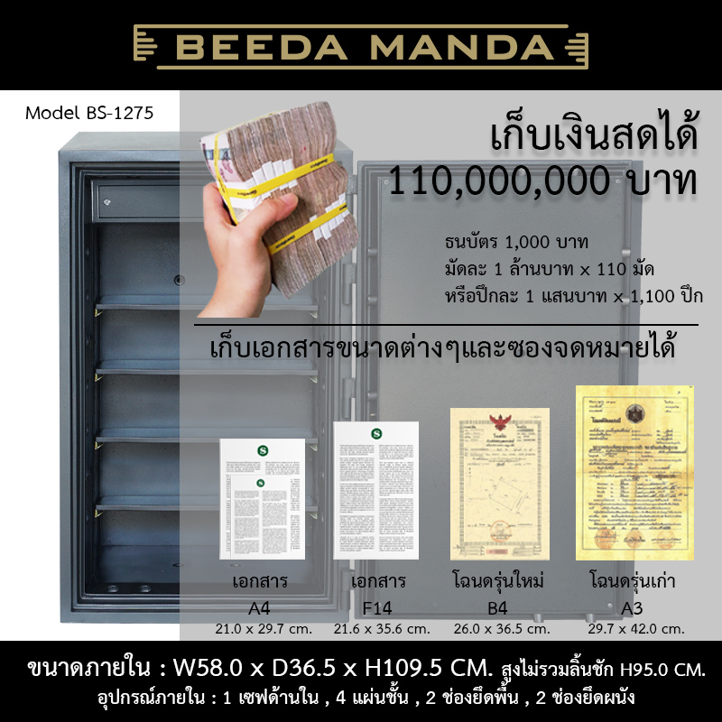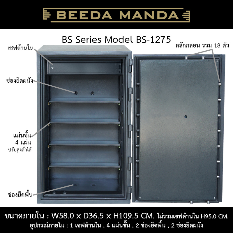 ผลิตจากโครงสร้างเหล็กอย่างหนา ภายในบรรจุด้วยส่วนผสมของสารกันไฟที่เป็นสูตรลับของ BEEDA MANDA