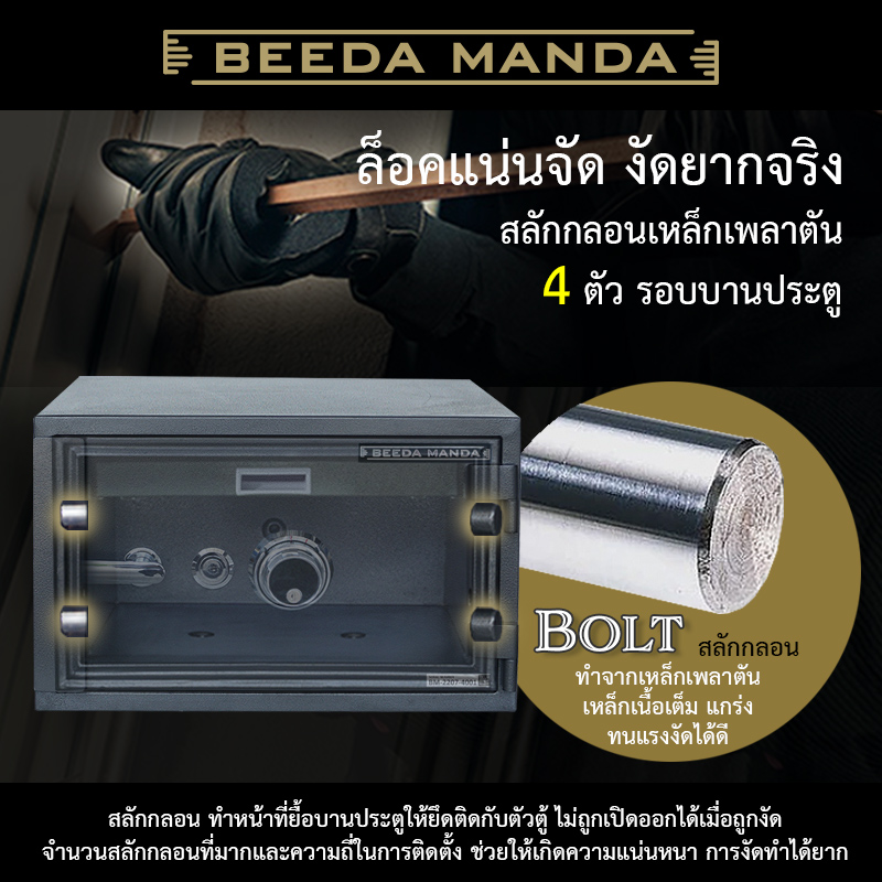 ผลิตจากโครงสร้างเหล็กอย่างหนา ภายในบรรจุด้วยส่วนผสมของสารกันไฟที่เป็นสูตรลับของ BEEDA MANDA