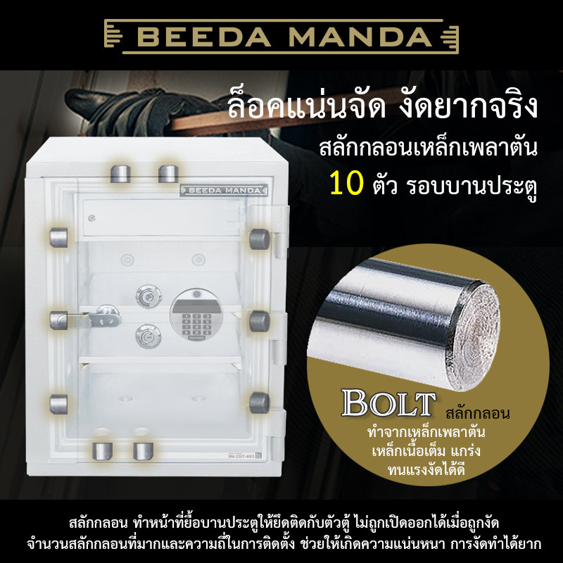 ผลิตจากโครงสร้างเหล็กอย่างหนา ภายในบรรจุด้วยส่วนผสมของสารกันไฟที่เป็นสูตรลับของ BEEDA MANDA
