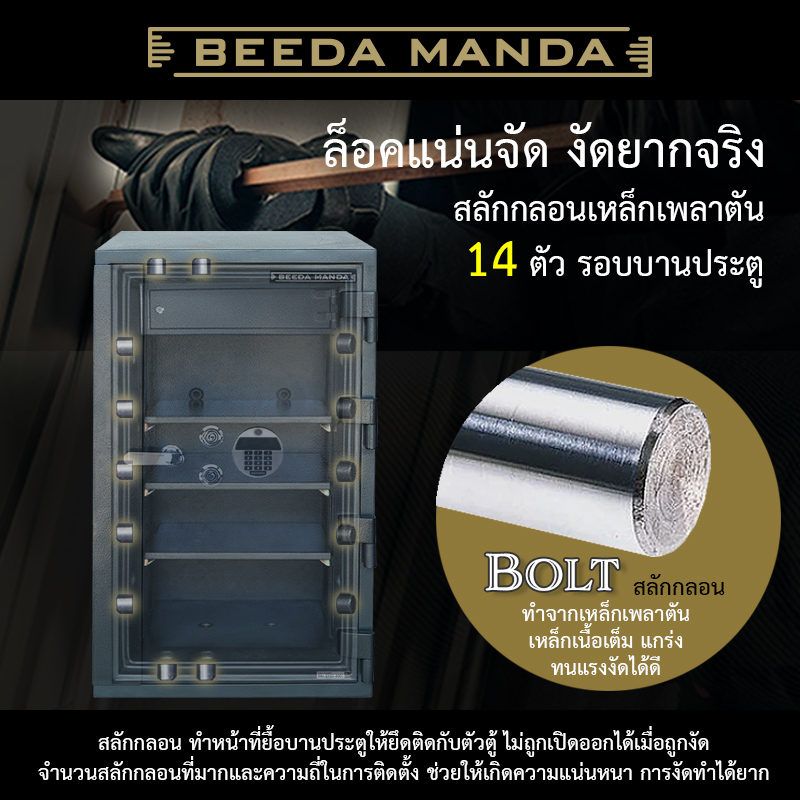 ผลิตจากโครงสร้างเหล็กอย่างหนา ภายในบรรจุด้วยส่วนผสมของสารกันไฟที่เป็นสูตรลับของ BEEDA MANDA
